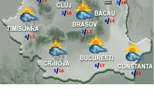 Cerul va fi temporar noros. Va ploua slab, mai ales în cursul zilei, în Banat, local în Oltenia şi izolat în celelalte regiuni. La munte, la altitudini mari, precipitaţiile vor fi şi sub formă de lapoviţă sau ninsoare. Vântul va sufla slab şi moderat, cu intensificări la munte, în regiunile sudice şi sud-estice şi pe arii restrânse, trecător, în restul teritoriului. Dimineaţa şi noaptea, în zonele joase, local va fi ceaţă.