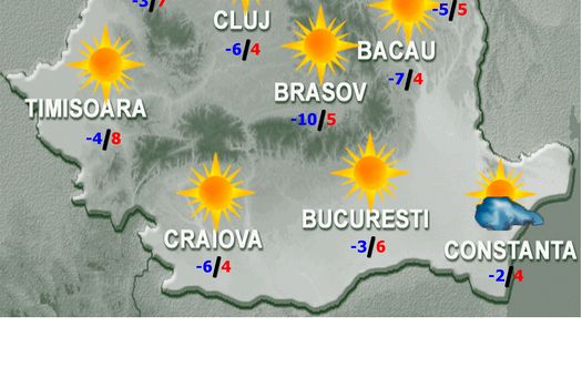 Vineri, vremea se va menţine în general frumoasă şi va deveni apropiată de normalul termic al acestei date. Astfel, temperaturile maxime vor fi cuprinse între -2 şi 9 grade, iar cele minime între -10 şi 0 grade, mai scăzute în depresiuni, dar şi uşor mai ridicate în Dealurile de Vest.