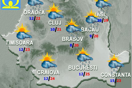 Izolat cantităţile de apă vor depăşi 20…25 l/mp, îndeosebi în Maramureş, Moldova şi la munte. Vântul va sufla moderat, local cu intensificări la munte, iar cu precădere după-amiaza şi în restul zonelor. Temperaturile maxime, în scădere în regiunile nordice, se vor încadra între 16 grade în estul Transilvaniei şi 26 de grade în Muntenia, iar cele minime vor fi cuprinse între 4 şi 15 grade.