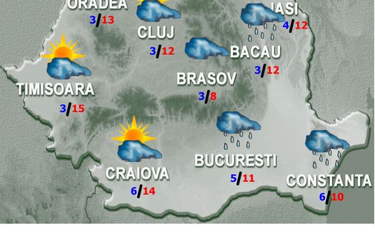 Vremea va continua să se răcească uşor, astfel încât regimul termic va fi caracterizat de valori mai scăzute decât cele normale pentru ultima decadă a lunii martie. Ziua cerul va avea înnorări şi în cea mai mare parte a ţării vor fi precipitaţii, pe arii restrânse moderate cantitativ. În nord şi în centru acestea vor fi mixte, la munte vor fi mai ales ninsori, iar în restul teritoriului va ploua. În cursul nopţii aria de nebulozitate şi precipitaţii va fi în restrângere către sud şi est, în timp ce în regiunile intracarpatice spre sfârşitul intervalului, local se va produce brumă.