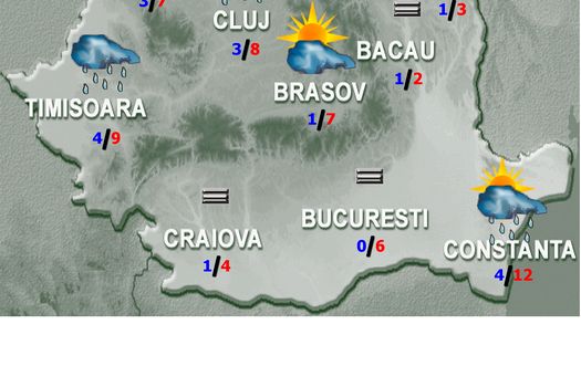Noaptea cerul va fi temporar noros, pe areale mici vor fi precipitaţii mixte în nord şi în centru, în rest vor fi posibile burniţe, iar local se va semnala ceaţă. Vor fi condiţii de polei. Vântul va sufla slab şi moderat, cu unele intensificări la munte şi pe litoral. Temperaturile maxime vor fi cuprinse, în general, între 2 şi 12 grade, iar cele minime între -2 şi 5 grade.