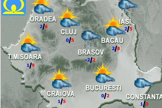 Cerul va fi temporar noros şi vor cădea precipitaţii mixte, pe arii restrânse la munte şi predominant sub formă de ploaie în Maramureş, Transilvania şi Moldova. În zonele joase de relief, mai ales dimineaţa şi noaptea, local, va fi ceaţă, trecător asociată cu burniţă sau ploaie slabă. Vor mai fi condiţii de producere a poleiului. Vântul va sufla slab şi moderat, cu unele intensificări la munte şi pe litoral. Temperaturile maxime vor fi cuprinse, între 0…2 grade în zonele cu ceaţă persistentă şi 11…13 grade în dealurile subcarpatice din sud şi est, iar cele minime se vor situa, în general, între -6 şi 4 grade.