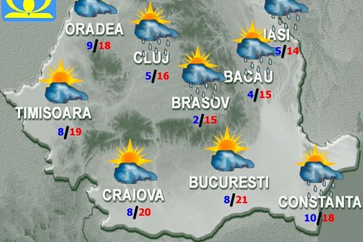 Vremea va continua să se răcească în cea mai mare parte a ţării, dar îndeosebi în regiunile estice. În nord, centru şi est precum şi la munte, cerul va fi temporar noros, mai ales ziua local va ploua, iar izolat cantităţile de apă vor depăşi 15…20 l/mp. Ploile vor fi şi sub formă de aversă şi mai pot fi descărcări electrice. În restul teritoriului cerul va fi variabil, iar condiţiile de ploaie reduse. În zona montană înaltă, trecător, se vor semnala precipitaţii mixte. Vântul va avea intensificări îndeosebi în regiunile centrale, sudice şi estice, unde se vor depăşi, local, viteze de 50…60 km/h, iar pe crestele montane vor fi rafale de peste 90 km/h. Temperaturile maxime vor fi cuprinse între 13 şi 22 de grade, iar cele minime între 0 grade în depresiunile Carpaţilor Orientali şi 10 grade pe litoral şi în Dealurile de Vest.
