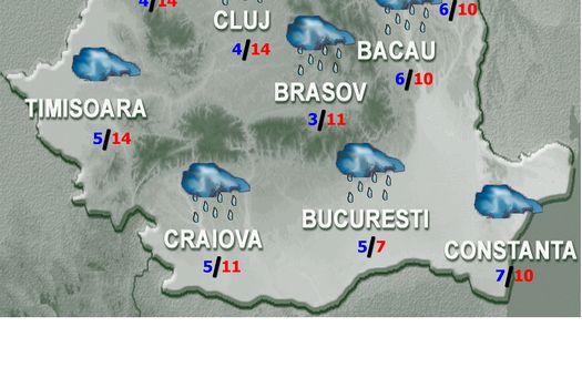Vineri, vremea se menţine în general închisă, dar caldă în vestul, nord-vestul şi centrul ţării. Cerul va fi mai mult noros şi va ploua pe arii extinse în regiunile extracarpatice şi local în rest. La munte precipitaţiile vor fi mixte. Vântul va sufla slab şi moderat, cu intensificări temporare în sud-est şi la munte. Temperaturile maxime vor fi cuprinse între 6 grade în Moldova şi în depresiuni şi 14 grade în regiunile vestice, iar cele minime se vor încadra între -1 şi 6 grade.