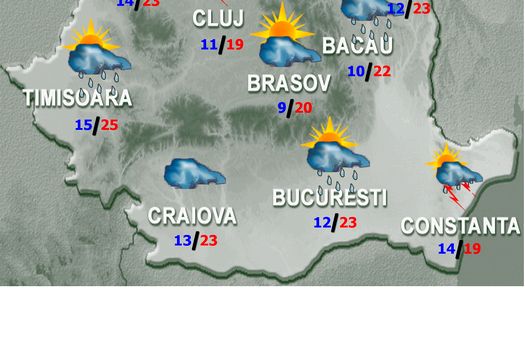 Vremea va deveni în general instabilă în jumătatea de nord-vest a teritoriului şi în zona montană, unde vor fi înnorări temporar accentuate, averse, descărcări electrice şi intensificări de scurtă durată ale vântului, posibil cu aspect de vijelie. Izolat vor fi căderi de grindină, iar cantităţile de apă vor depăşi 15…20 l/mp. În restul ţării, cerul va fi temporar noros şi doar pe arii restrânse vor fi ploi de scurtă durată şi descărcări electrice, îndeosebi după-amiaza. Valorile termice vor fi apropiate de mediile multianuale, cu maxime cuprinse între 16 şi 27 de grade şi minime între 7 şi 17 grade. Dimineaţa şi noaptea, izolat vor mai fi condiţii de ceaţă..