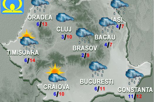 Cerul va fi noros, iar pe parcursul zilei temporar va ploua slab. Vântul va sufla slab şi moderat. Temperatura maximă va fi de 10…11 grade, iar cea minimă de 6…7 grade. Se va semnala ceaţă, mai ales în a doua parte a nopţii.