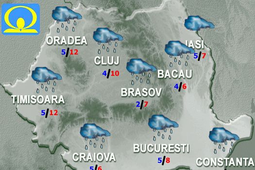 Vremea se va menţine caldă, îndeosebi valorile termice nocturne urmând a se situa peste mediile climatologice ale perioadei. Cerul va fi mai mult noros şi temporar va ploua în regiunile extracarpatice şi local în restul zonelor, iar izolat cantităţile de apă pot fi mai însemnate. La altitudini de peste 1500 m precipitaţiile vor fi mixte. Vântul va sufla slab şi moderat, cu unele intensificări în sud, sud-est şi la munte. Temperaturile maxime vor fi cuprinse între 5 şi 15 grade, iar cele minime se vor încadra între 1 şi 7 grade. Izolat se va semnala ceaţă.
