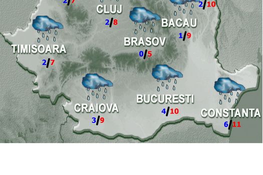 Vremea va fi în general închisă şi deosebit de rece. Vor fi precipitaţii în toată ţara, mai frecvente şi importante cantitativ în est şi în centru şi în zonele montane şi submontane, unde cantităţile de apă vor depăşi local 20…25 l/mp şi izolat 30…40 l/mp. În Carpaţii Orientali şi Meridionali va continua să ningă abundent şi să se depună strat consistent de zăpadă, iar vântul va avea intensificări cu rafale de 60…70 km/h şi peste 80…90 km/h pe creste, viscolind puternic ninsoarea şi reducând vizibilitatea. În Moldova vor predomina ninsorile, în Transilvania, Maramureş şi trecător în zona deluroasă din sud vor fi şi lapoviţe şi ninsori, iar în rest va ploua. Intensificări temporare ale vântului vor fi şi în zonele mai joase de relief, îndeosebi din est şi sud-est, unde vitezele vor atinge 50…60 km/h. Temperaturile maxime se vor încadra între 1 şi 11 grade, iar cele minime între -5 şi 4 grade.