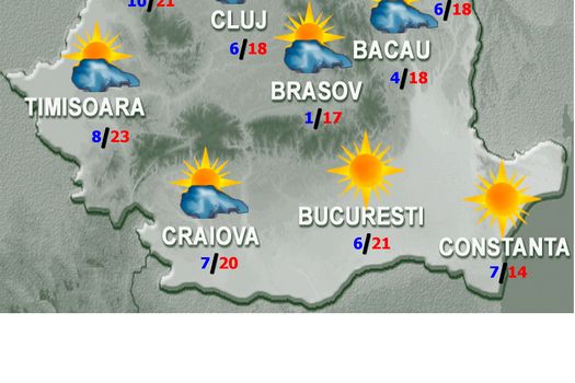 Cerul va fi variabil, cu unele înnorări ziua în nord-vestul ţării, unde izolat vor fi condiţii pentru ploi slabe, de scurtă durată. Vântul va sufla slab şi moderat, cu intensificări la munte, îndeosebi în zona înaltă, dar local şi în Banat, Crişana, Dobrogea şi Moldova. Temperaturile maxime vor fi cuprinse între 13 şi 23 de grade, uşor mai scăzute în deltă, iar cele minime în general între 2 şi 10 grade. În zonele joase de relief, izolat se va semnala ceaţă, iar în estul Transilvaniei vor mai fi condiţii de brumă.