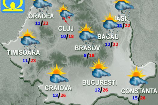 Marţi, valorile termice vor fi apropiate de cele normale pentru această dată. Cerul va fi variabil, cu înnorări în a doua parte a zilei când trecător vor fi condiţii de ploaie. Vântul va sufla moderat, cu unele intensificări ziua. Temperatura maximă se va situa în jurul valorii de 26 de grade, iar cea minimă va fi de 11…13 grade.