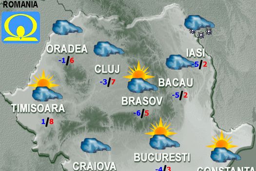 Temperaturile maxime vor fi cuprinse între -1 grad în nordul Moldovei şi 8…9 grade în sudul Transilvaniei şi în Dealurile de Vest, iar cele minime se vor situa între -8 şi 3 grade, mai coborâte în depresiuni şi în nordul Moldovei. Izolat, spre sfârşitul intervalului, vor fi condiţii de ceaţă.