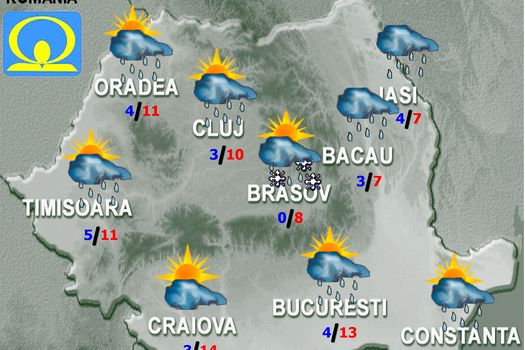 Vor fi înnorări temporar accentuate şi va ploua, mai ales sub formă de aversă, în majoritatea regiunilor. Excepţie vor face Oltenia şi vestul Munteniei, unde cerul va fi variabil, iar ploile se vor semnala pe arii restrânse, îndeosebi după-amiaza. În zona montană vor predomina ninsorile, se va depune strat nou de zăpadă, mai ales la altitudini de peste 1 500 m, iar vântul va avea intensificări cu viteze de peste 70…80 km/h, viscolind şi spulberând zăpada, în special pe crestele Carpaţilor Meridionali şi de Curbură. În Maramureş, Transilvania şi posibil în Moldova, trecător vor fi precipitaţii mixte. În regiunile estice, precum şi la munte, se vor cumula cantităţi de 15…20 l/mp şi izolat 25 l/mp. Intensificări ale vântului vor fi şi în restul teritoriului, îndeosebi în prima parte a intervalului, cu rafale de până la 50…60 km/h. Temperaturile maxime se vor încadra între 6 grade în Moldova şi estul Transilvaniei şi 14…15 grade în Oltenia, iar cele minime, în general, între -2 şi 6 grade. Spre sfârşitul intervalului, în nord-vest şi centru şi izolat în rest, se va produce brumă.