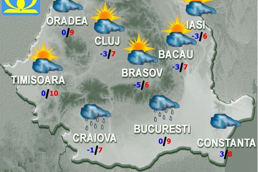 În zona montană va ninge. Vântul va mai avea intensificări ziua în est şi în sud-est. Temperaturile maxime se vor încadra între 4 şi 11 grade, iar cele minime, în general, între -8 şi 0 grade. În majoritatea regiunilor, pe arii restrânse se va produce brumă.