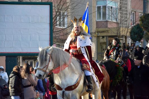 Parada a fost deschisă de buciumaşi, urmaţi de călăreţi costumaţi în Ştefan cel Mare şi curtea acestuia, unul dintre călăreţi fiind un copil ce a reprezentat Anul Nou. Nu a lipsit nici ceata de urători din Crasna-Ucraina şi grupurile de urători din toate vetrele folclorice ale judeţului Suceava.