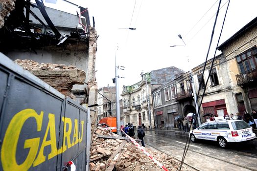 Şoferii sunt sfătuiţi să circule cu atenţie în zonă şi să respecte semnalele poliţiştilor rutieri, având în vedere că alte porţiuni din clădire s-ar putea prăbuşi.
