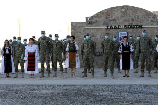 „Chiar dacă suntem departe, gândul ne zboară acasă în fiecare zi. Şi, când eşti plecat cu lunile, realizezi că acasă nu e doar colţişorul tău, e întreaga Românie, căci îţi lipseşte tot ce are ea. În Baza Militară Kandahar, militarii contingentului românesc au sărbătorit Ziua Naţională printr-un ceremonial militar, alături de partenerii NATO. Câţiva militari au purtat mândri frumosul costum popular românesc, adus cu ei din ţară special pentru 1 Decembrie, şi au pus în pieptul tuturor participanţilor la ceremonial tricolorul. Din Afganistan, îţi transmitem cel mai sincer La mulţi ani, Românie frumoasă!”, au scris pe Facebook, militarii români din Baza Militară Kandahar.