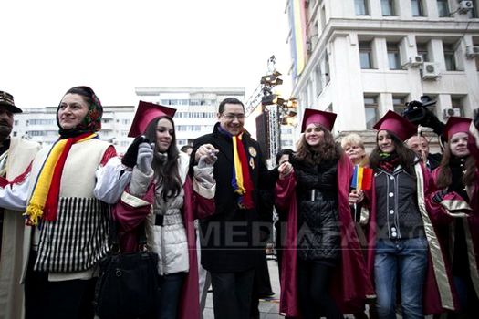 Victor Ponta s-a prins în Hora Unirii la Focşani, alături de cetăţenii care au participat la manifestările prilejuite de sărbătorirea a 154 de ani de la Unirea Principatelor Române, premierul invitându-i pe elevii liceelor şi colegiilor din Vrancea să se prindă în Hora Unirii, precizând că ei sunt viitorul României.