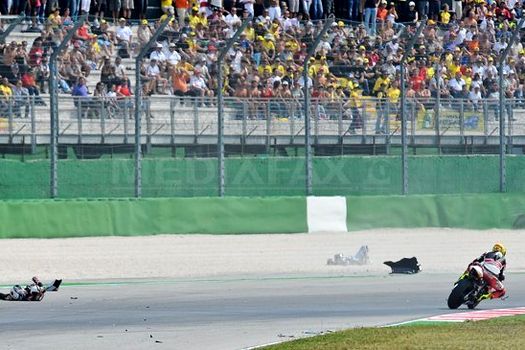 Tomizawa, de la echipa Suter, a căzut în timpul cursei, fiind „călcat” de motocicletele pilotate de Alex De Angelis şi Scott Redding.