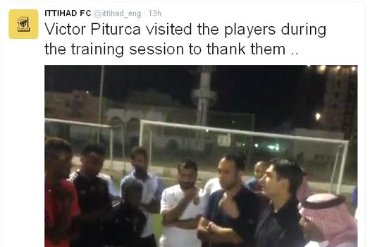 „Victor Piţurcă i-a vizitat pe jucători în timpul şedinţei de pregătire pentru a le mulţumi…”, este explicaţia grupării saudite.