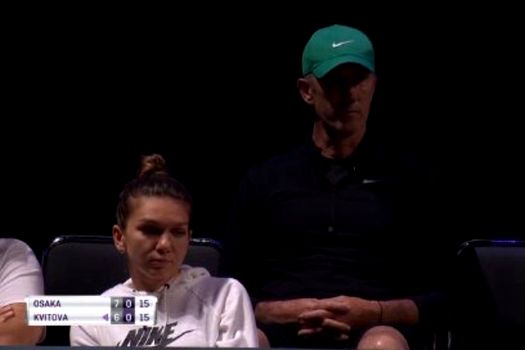 În imaginile prezentate de camerele TV, Simona Halep se află alături de Darren Cahill, antrenor cu care a reluat colaborarea cu sportiva din România.