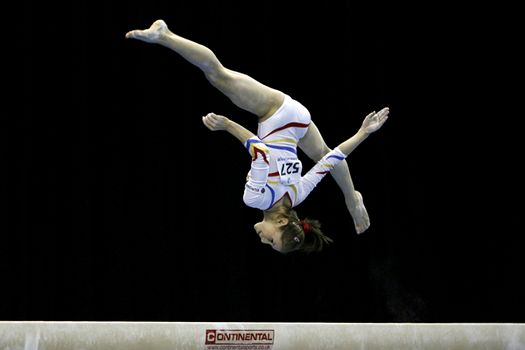 Amelia Racea, care a înlocuit-o pe Ana Porgras, accidentată, a intrat prima în finala de la bârnă, fiind notată cu 14.400, notă care i-a adus gimnastei antrenate de Nicolae Forminte aurul european.