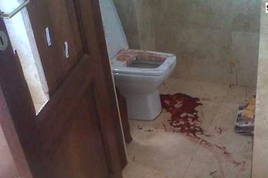 Într-una dintre fotografii, se observă o baltă de sânge în baia în care Reeva a fost împuşcată, precum şi urmele lăsate de gloanţele trase de Pistorius. În plus, se văd urme de sânge pe scări, pe o canapea de sub scări sau pe unul dintre pereţi.