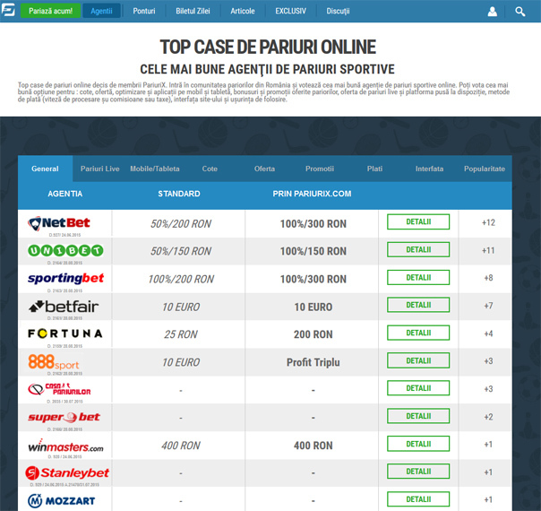 Pe lângă toate acestea, comunitatea pariorilor din România a obţinut un bonus de 50%, până la 200 RON, valabil pentru utilizatorii care se înregistrează prin link-urile comunităţii. Oferta standard a agentiei este bonus de 50% din primul depozit pana la 150 RON.