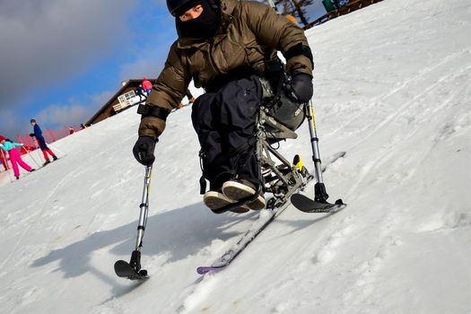 Membrii asociaţiei au fost cei care au adaptat scaunele cu rotile pentru schi, astfel încât persoanele cu dizabilităţi să poată schia singure.