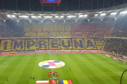 Inspiraţi de cele întâmplate la meciul dintre Steaua şi Manchester City din preliminariile UEFA Champions League, fanii naţionalei au afişat o coregrafie superbă la tribuna a doua a Arenei Naţionale.