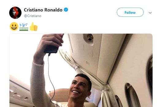 Marţi, 22 ianuarie, atacantul portughez a „urcat” o imagine atât pe Twitter, cât şi pe Instagram, în care el îşi făcea un selfie în avionul privat.