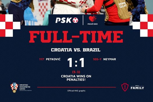 Petkovici profită de pasa nou-intratului Orsic şi marchează: 1-1! Mingea a fost deviată de brazilianul Marquinhos. Egalarea a survenit în minutul 117, cu 3 minute rămase de jucat din prelungiri. Şi cu Japonia., în „optimi”, Croaţia a revenit de la 0-1 pe tabelă.