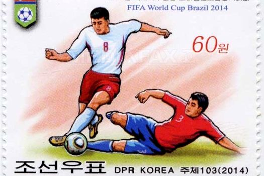 Nord-coreenii au realizat noi timbre pentru a celebra Cupa Mondială 2014, informează huffingtonpost.com.