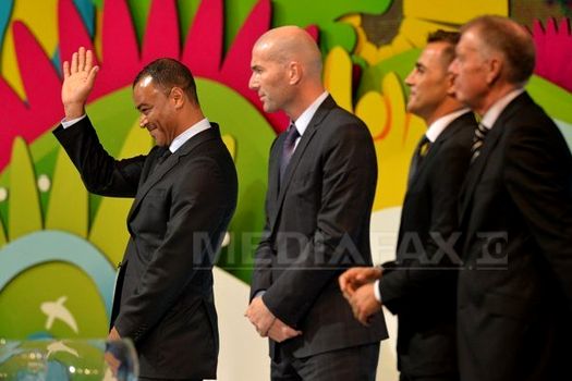 Tragerea la sorţi a grupelor a fost condusă de Jerome Valcker, secretar general al FIFA. Acesta a fost asistat de opt foşti fotbalişti, reprezentând ţările care au câştigat Cupa Mondială: Cafu (Brazilia), Fernando Hierro (Spania), Zinedine Zidane (Franţa), Fabio Cannavaro (Italia), Lothar Matthaus (Germania), Alcides Ghiggia (Uruguay), Geoffrey Hurst (Anglia) şi Mario Kempes (Argentina).