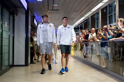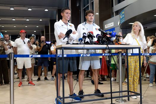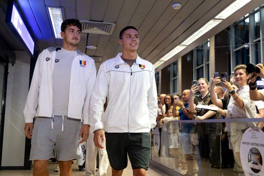 Starul natației românești David Popovici a fost întâmpinat pe aeroport de câteva sute de fani, după ce a cucerit două medalii de aur la Campionatele Mondiale din Singapore. Zborul său, programat inițial la ora 20:25, a avut o întârziere și o escală la Istanbul.
