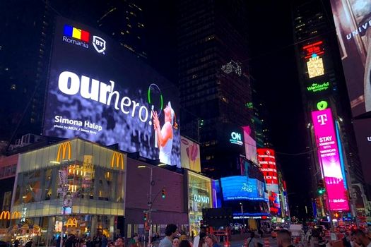 Campioana de la Wimbledon şi favorita nr. 4 a turneului de Grand Slam de la Flushing Meadows, a apărut într-o reclamă luminoasă chiar în Times Square, cea mai aglomerată piaţă a metropolei americane şi, după unele topuri, cel mai vizitat obiectiv turistic din lume. Sub titulatura de ”OurHero!”, americanii, dar şi turiştii din întreaga lume au aflat ce înseamnă, de fapt, Simona Halep pentru România! Fostul lider mondial WTA se numără printre principalele favorite la câştigarea titlului de la US Open în acest an, mai mulţi specialişti pronosticând o finală Halep – Serena. Simona are deja un trofeu de Grand Slam cucerit în această vară, la Wimbledon, şi este încrezătoare în posibilităţile ei de a ajunge departe.