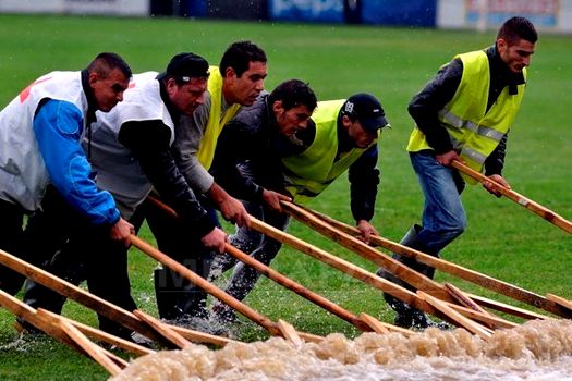 Arbitrul Ovidiu Haţegan a inspectat terenul cu zece minute înaintea fluierului de start, dar mingea nu sărea în multe zone ale terenului. Între timp, terenul a fost curăţat cu ajutorul unor teuri.