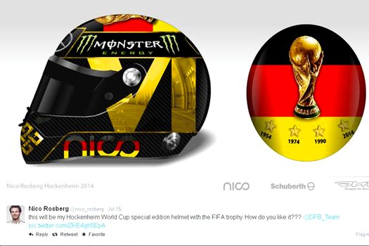 Liderul clasamentului piloţilor de Formula 1, Nico Rosberg (Mercedes), intenţionează să poarte o cască specială la cursa de la Hockenheim, programată în acest week-end, pentru a marca al patrulea titlu de campioană mondială câştigat de naţionala de fotbal a Germaniei.