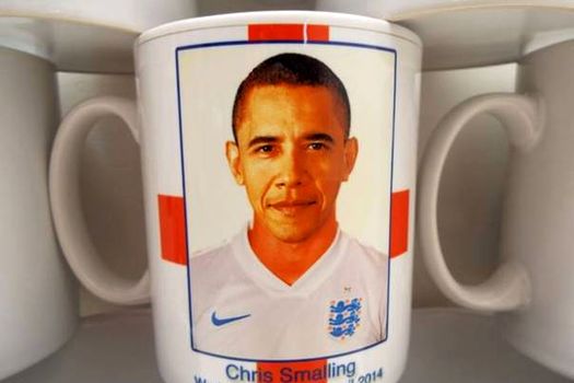 Pe cănile pe care scrie Chris Smalling, World Cup squad Brazil 2014, producătorii au pus din greşeală o poză cu Barack Obama, îmbrăcat în tricoul de joc al reprezentativei Albionului, informează dailymail.co.uk.