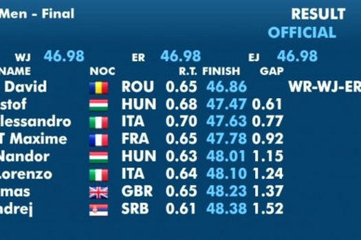 Sportivul de la CS Dinamo a obţinut aurul în una dintre cele mai importante probe ale nataţiei şi a stabilit cel mai bun timp din istorie. Celălalte medalii au fost adjudecate de maghiarul Kristof Mila şi italianul Alessandro Miressi.