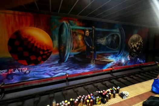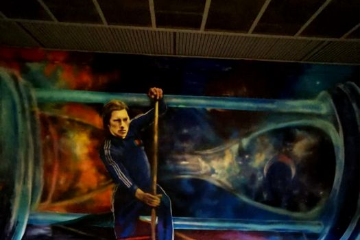 Muralul a fost realizat de Obie Platon, care şi-a dorit prin simbolistica lui să surprindă perseverenţa şi ambiţia de care a dat dovadă Ivan Patzaichin în cariera lui, dar şi trecerea sa în eternitate. Opera e parte dintr-o iniţiativă a Metrorex de a aduce la viaţă staţiile de metrou din Bucureşti, prin culoare.
