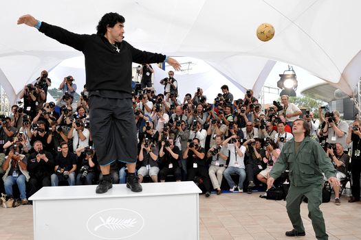 2008. Regizorul Emir Kusturica şi legenda fotbalului argentinian Diego Maradona în timpul Festivalului de la Cannes. Fotografie de Hahn-Nebinger-Orban / ABACAPRESS.COM