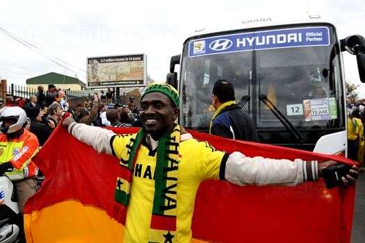 Primii fani au ajuns la aeroport cu şase ore înaintea sosirii preconizate a lotului şi au început să danseze. Avionul „Stelelor negre” a întârziat două ore, iar jucătorii au fost întâmpinaţi cu urale, cu steaguri fluturând, cu trompete şi cu un banner pe care era scris „Vă iubim, eroii noştri, sunteţi mândria Ghanei şi a Africii”.