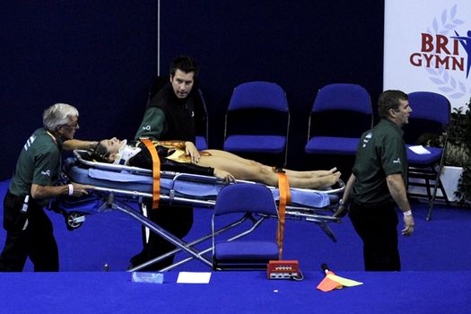 Jessica Gil Ortiz a fost scoasă din sală pe targă, având gâtul imobilizat.