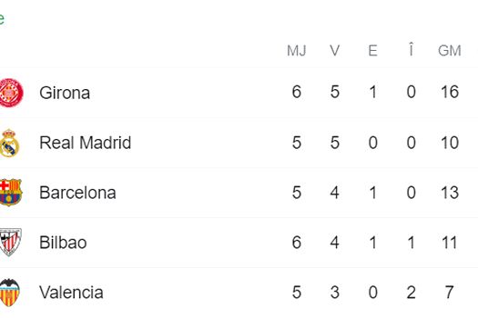 Sub conducerea antrenorului Míchel Sánchez, Girona este revelaţia sezonului până acum. Echipa modestă din regiunea Catalonia din nord-estul Spaniei a câştigat cinci meciuri consecutive după o remiză cu Real Sociedad în prima etapă, notează AP.