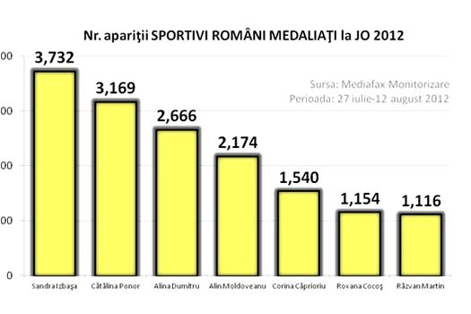 Mediafax Monitorizare a analizat pe toată durata Jocurilor Olimpice de la Londra aproximativ 68.000 de surse de informare online – site-uri, conturi de Twitter, pagini de Facebook şi bloguri -, urmărind apariţia celor şapte sportivi români medaliaţi în articolele difuzate.