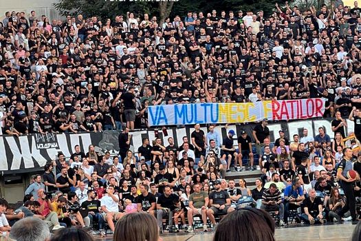 Mesajul ultraşilor români pare să fie primit bine în Serbia. Astăzi la meciul de baschet al celor de la Partizan Belgrad, una dintre cele mai bune patru echipe din Europa sezonul trecut, a fost afişat un banner vopsit în tricolor.
