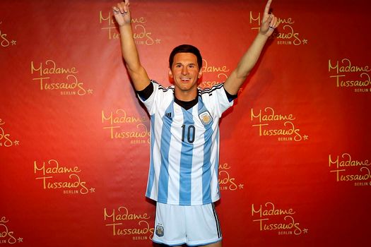 Argentinianul poartă echipamentul Barcelonei, spre deosebire de reprezentarea de la Madame Tussauds, unde este îmbrăcat în tricoul Argentinei.