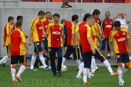 La antrenament a fost prezent şi mijlocaşul Bănel Nicoliţă (Steaua), care ar trebui să efectueze vizita medicală şi să semneze un contract cu AS Saint-Etienne până miercuri, când se încheie perioada de transferuri.