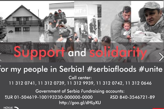 Novak Djokovic şi-a schimbat poza de pe profilul de pe Facebook cu una în care solicită sprijin pentru cei afectaţi de inundaţii.