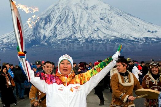 Tot în Extremul Orient, torţa JO a traversat insula Sahalin, unde a fost primită de reprezentanţi ai populaţiei indigene.